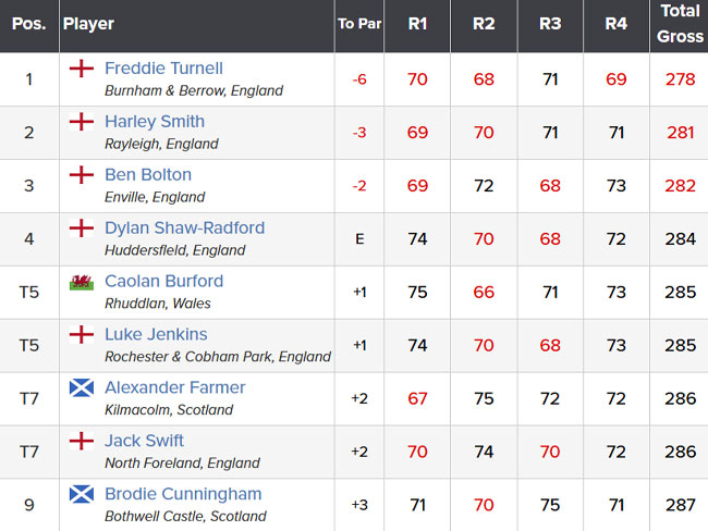 Four Kent lads made the cut and had good results in the U20 George Henriques Salver, with Luke Jenkins finishing T5, Jack Swift T7, and William Partner 11th. Well done.