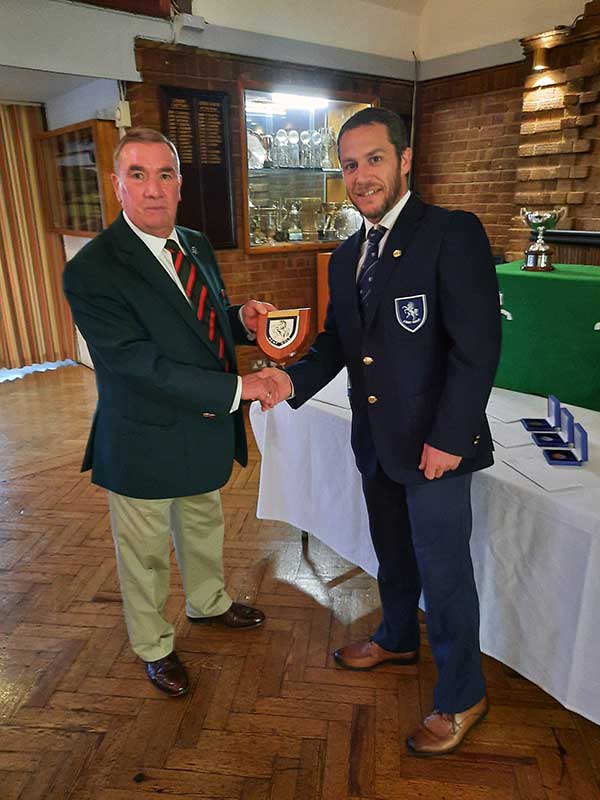 West Kent Club Captain Danny Caton being presented plaque by Lee Jones for hosting the Oscar Ash Cups